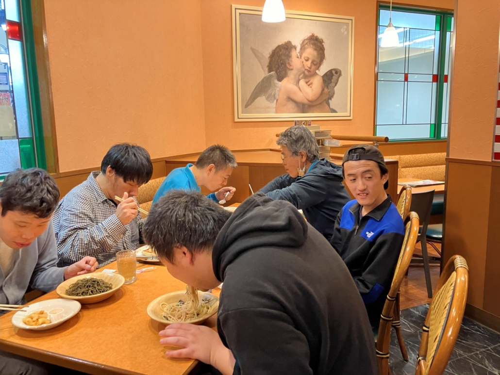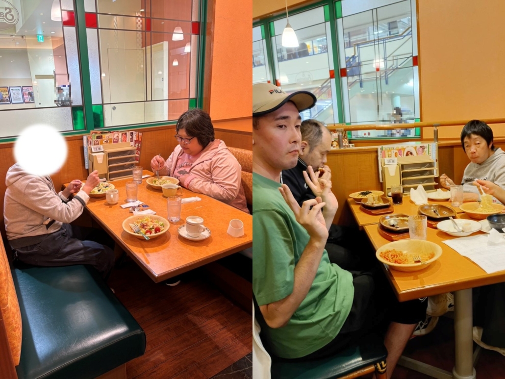 外食2025年11月18日/カテゴリ: News Blog 外食レクにおでかけしてきました。当日までにメニュー選び♪予算以内で複数のメニューを頼めるので、皆さん悩まれていました。 当日は皆さん普段とは違う昼食を楽しんで下さいました。違う場所や違うメンバーでテーブルを囲むだけでも、普段とは違う利用者様の行動や表情が見れました。スタッフも色んな気づきがあったとてもいい外食レクになりました。 https://makarii.com/wp-content/uploads/2025/11/2-1.jpg 1143 1524 zawazawa http://makarii.com/wp-content/uploads/2020/10/logo.png zawazawa2025-11-18 01:52:592025-11-18 01:52:59外食
