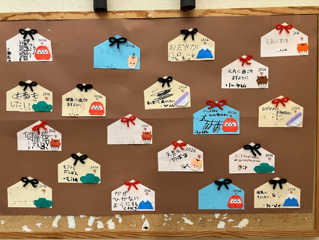 みんなで絵馬を書いて所内に飾っています。