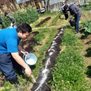 新しく、サニーレタスとキャベツも植えました!皆さん、慣れた手つきで取り組まれています(^-^)